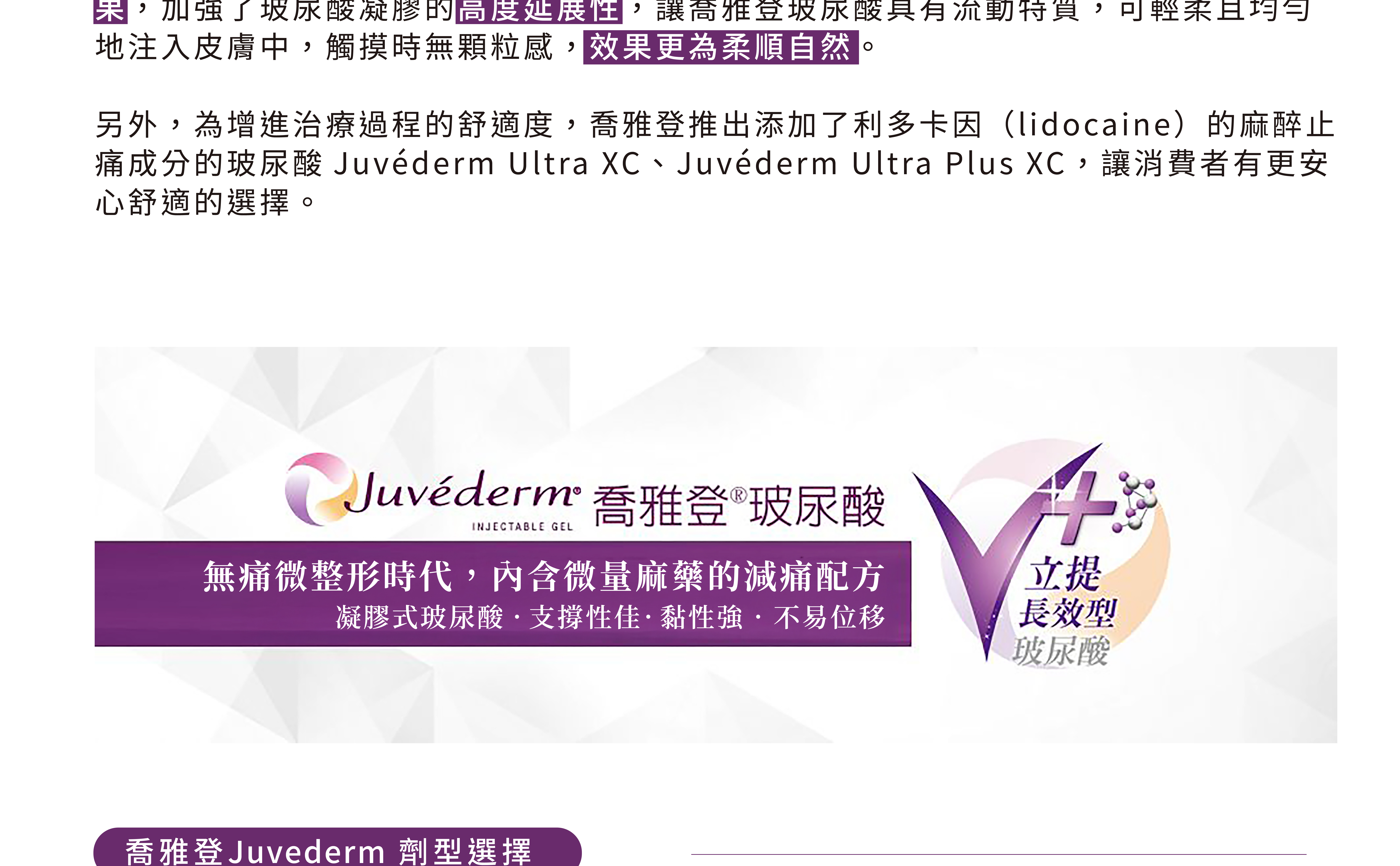 施打喬雅登玻尿酸可不用使用麻藥(本品含 lidocaine 可以減低治療過程中的疼痛)。