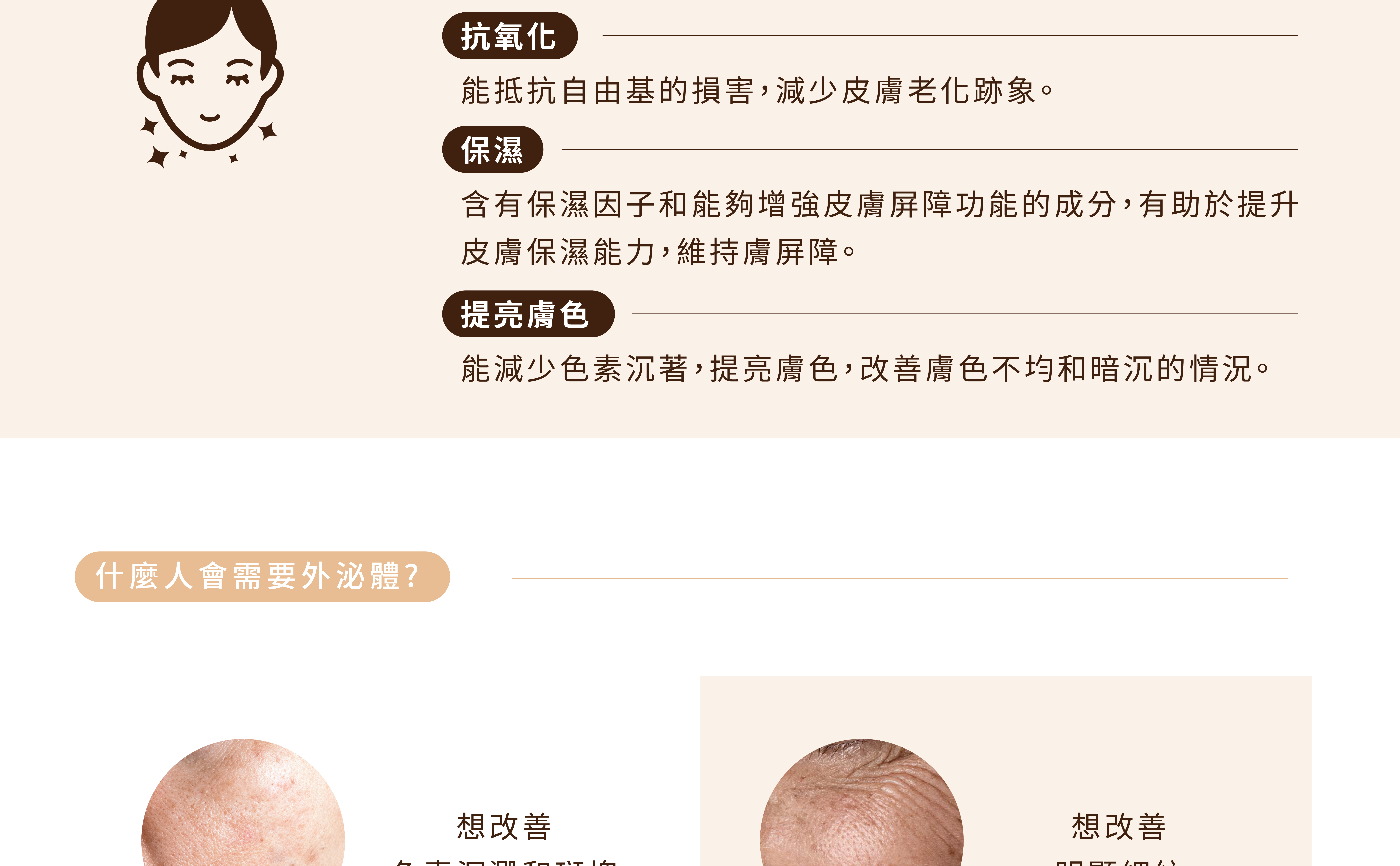 抗發炎物質在外泌體中是重要成分,其作用是減輕紅腫熱痛等發炎現象,有助於防止局部破壞和老化,長期有助於預防重大疾病。