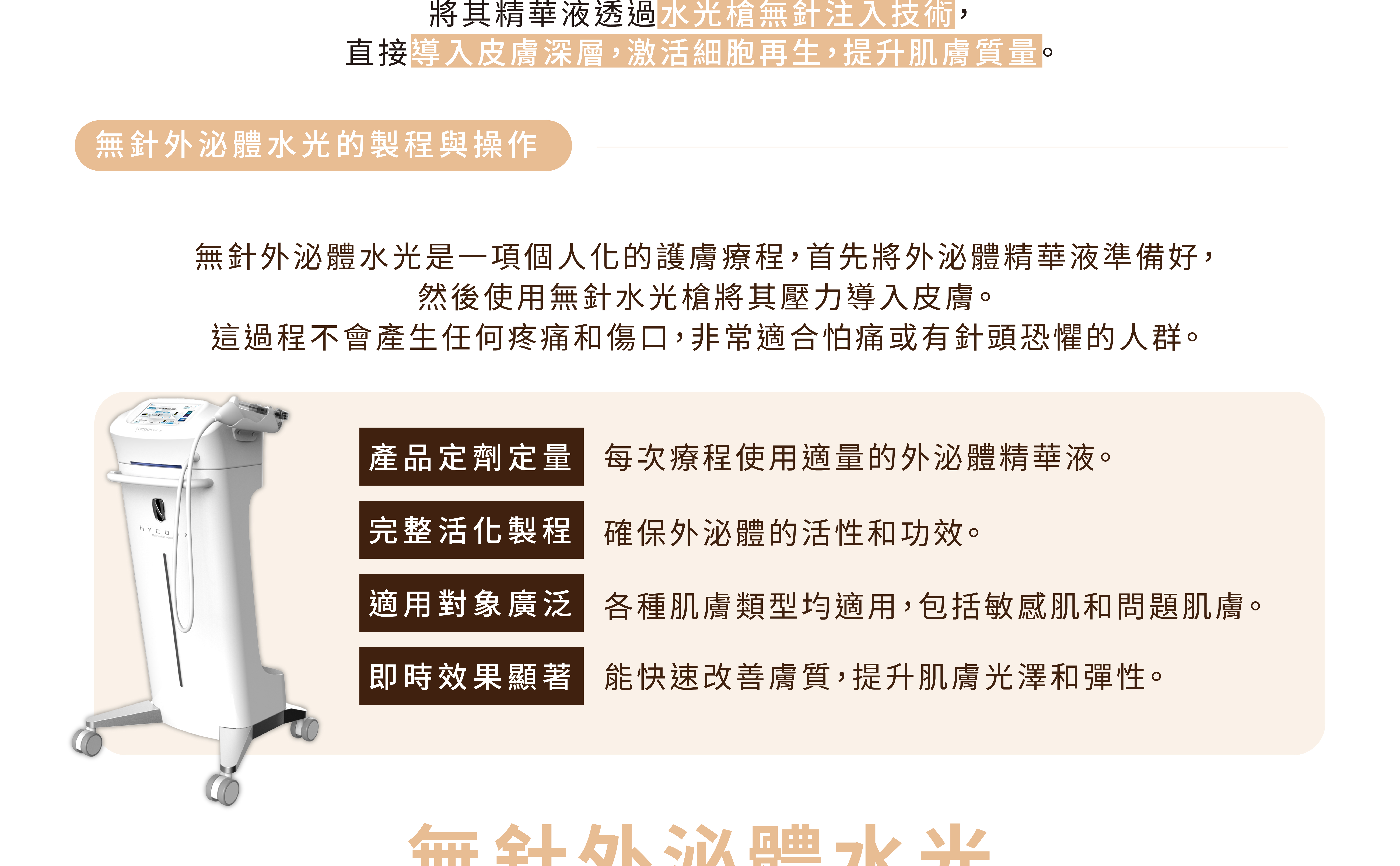 - 避免直接陽光:外泌體療程後,皮膚可能易敏,更容易受到陽光的損害。術後一周應避免長時間暴露在陽光下,或使用高SPF的陽光防護產品。