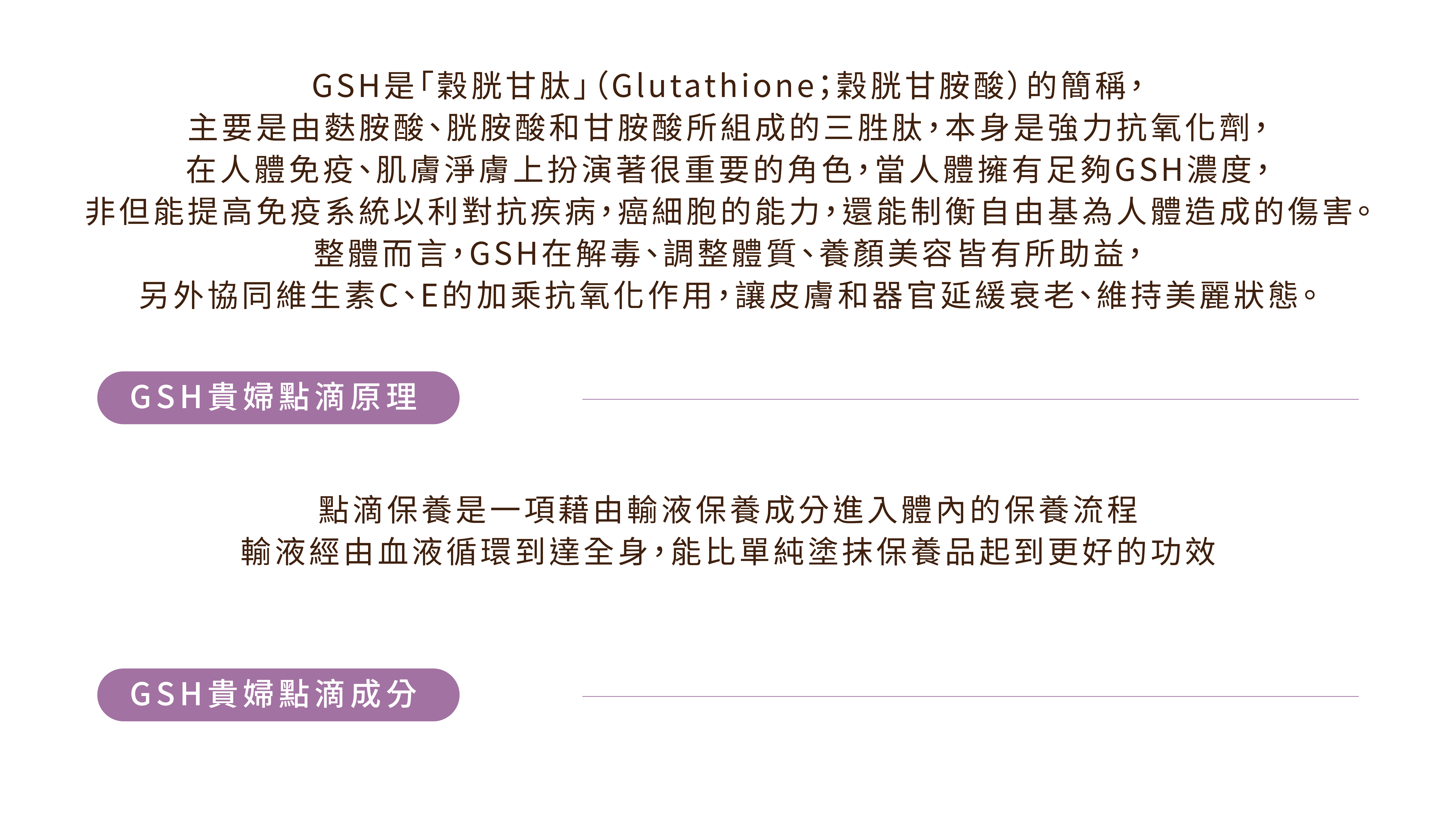 - 注射GSH貴婦點滴後,請加強日常防曬、保濕作業。