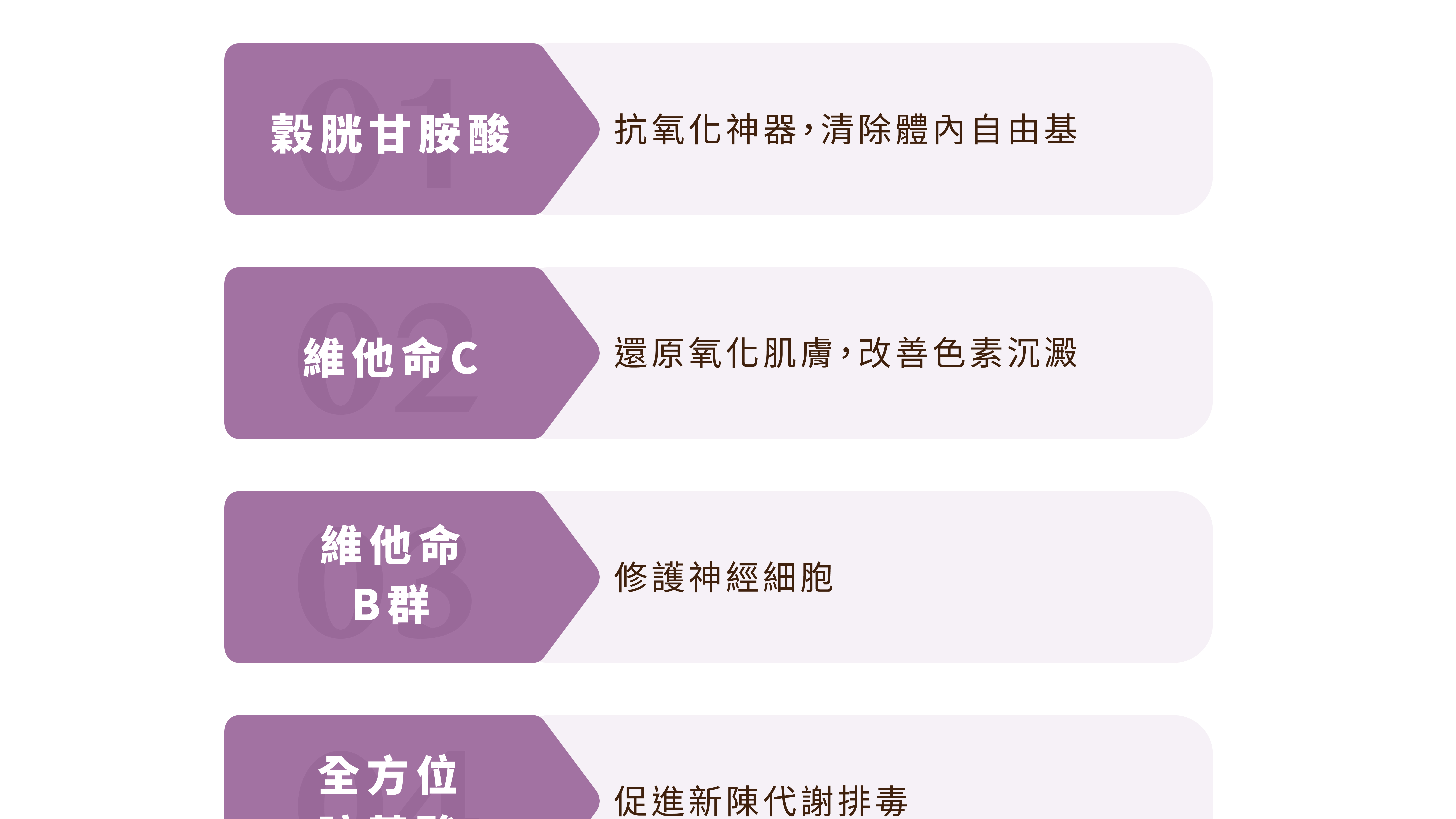 點滴內成分多由抗氧化配方組成,需先經過人體自行合成、吸收,進而加速代謝速率,方能見效,一般約莫術後3天候會開始感受到肌膚變化。
