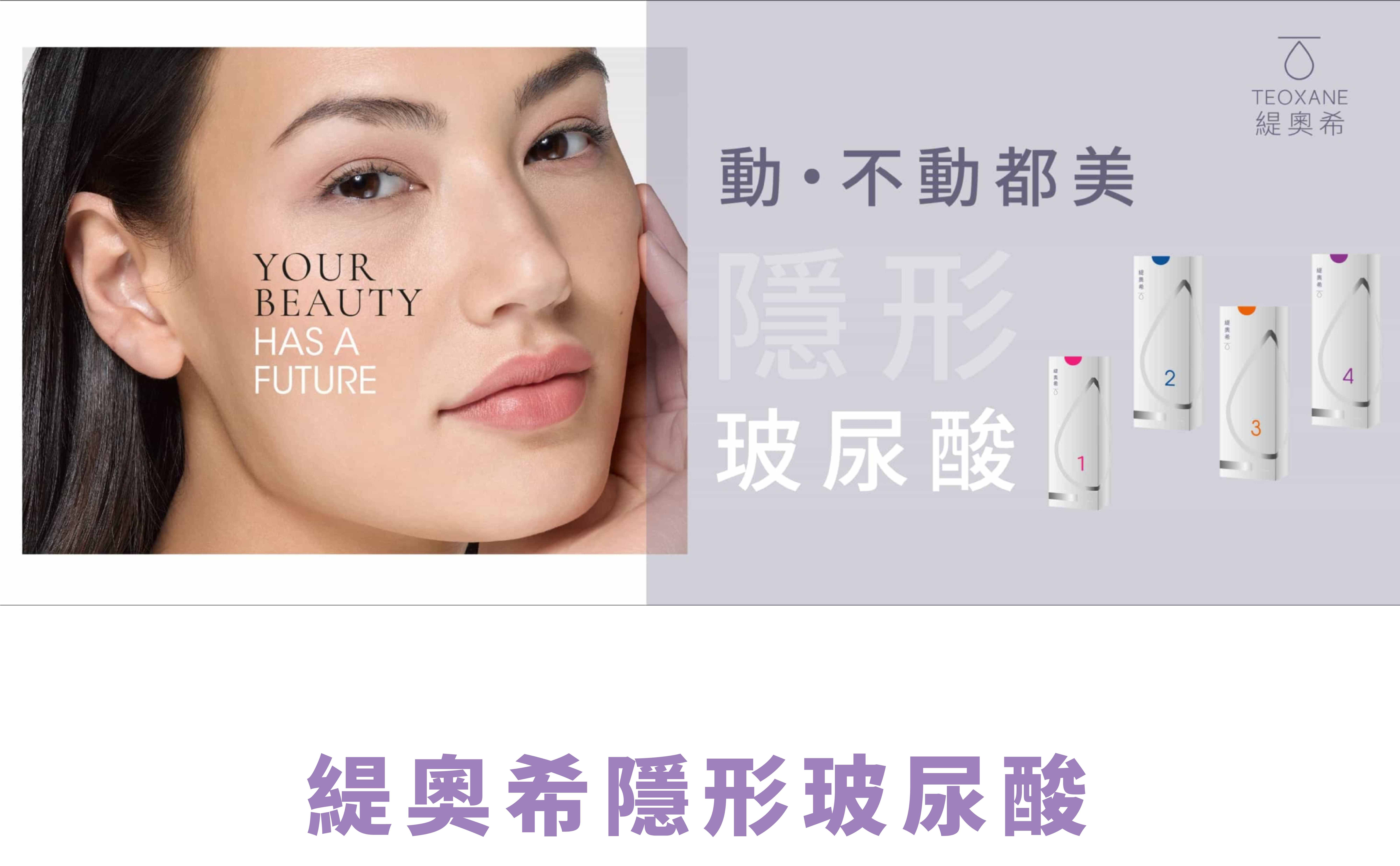 緹奧希玻尿酸適合臉部各部位的動態或靜態紋路,尤其是眼周、法令紋等區域,並具有優異的延展性,可以符合臉部的動態需求,不會因表情而出現僵硬或凹凸不平的情況,完美呈現4D動態美。
