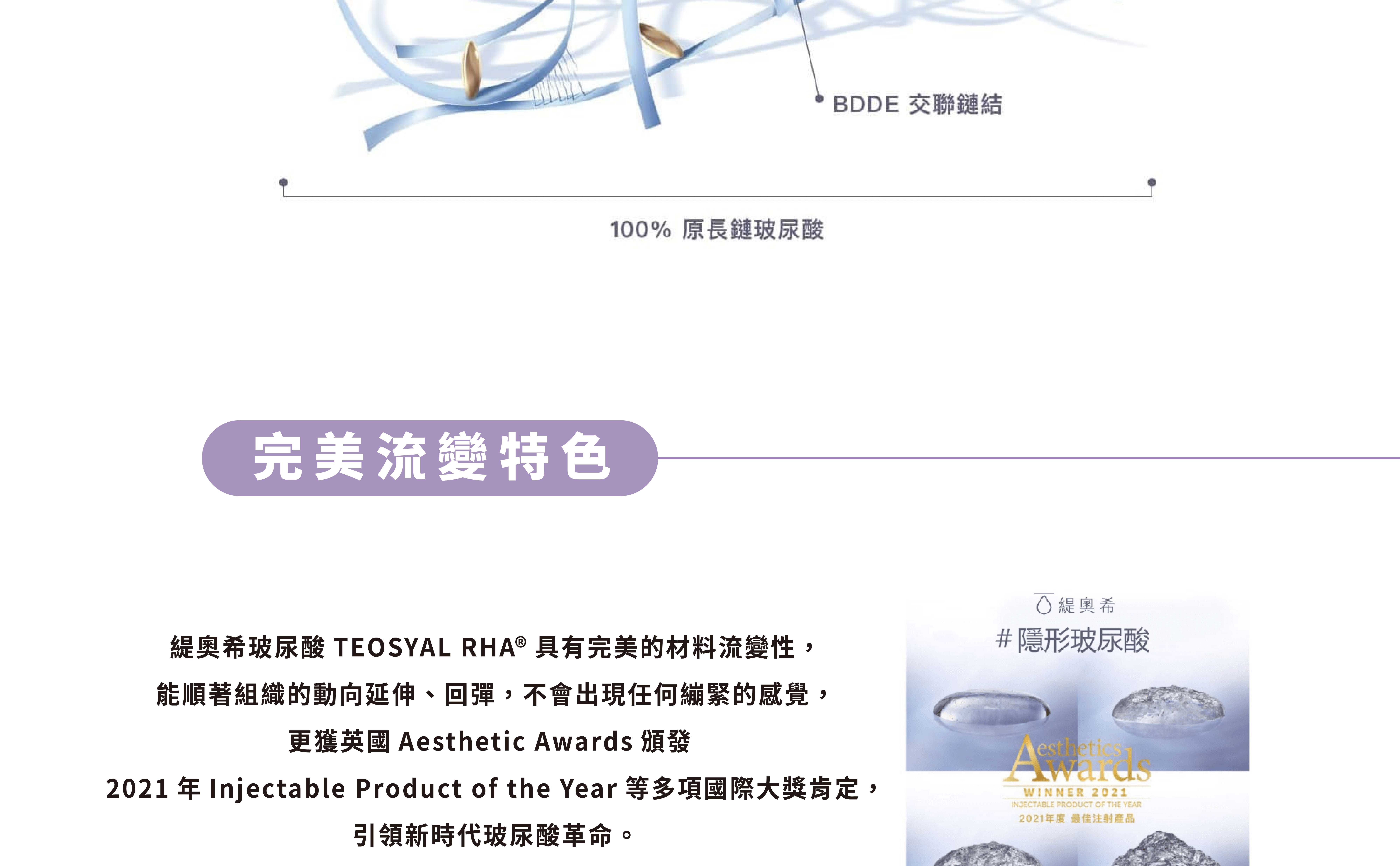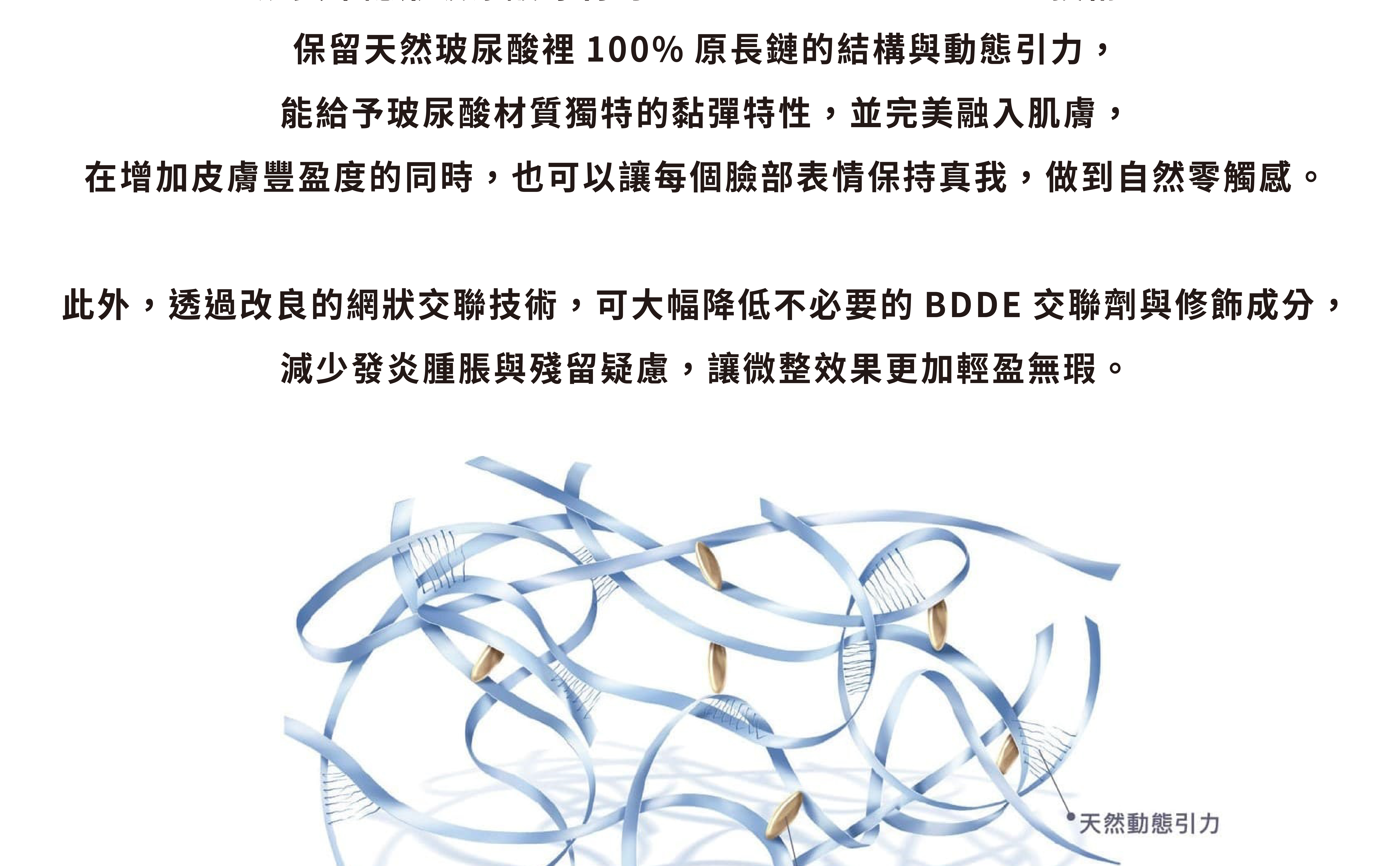 •緹奧希玻尿酸可抵抗外在的擠壓及適應肌膚動態的延展,讓你的表情生動自然,盡情