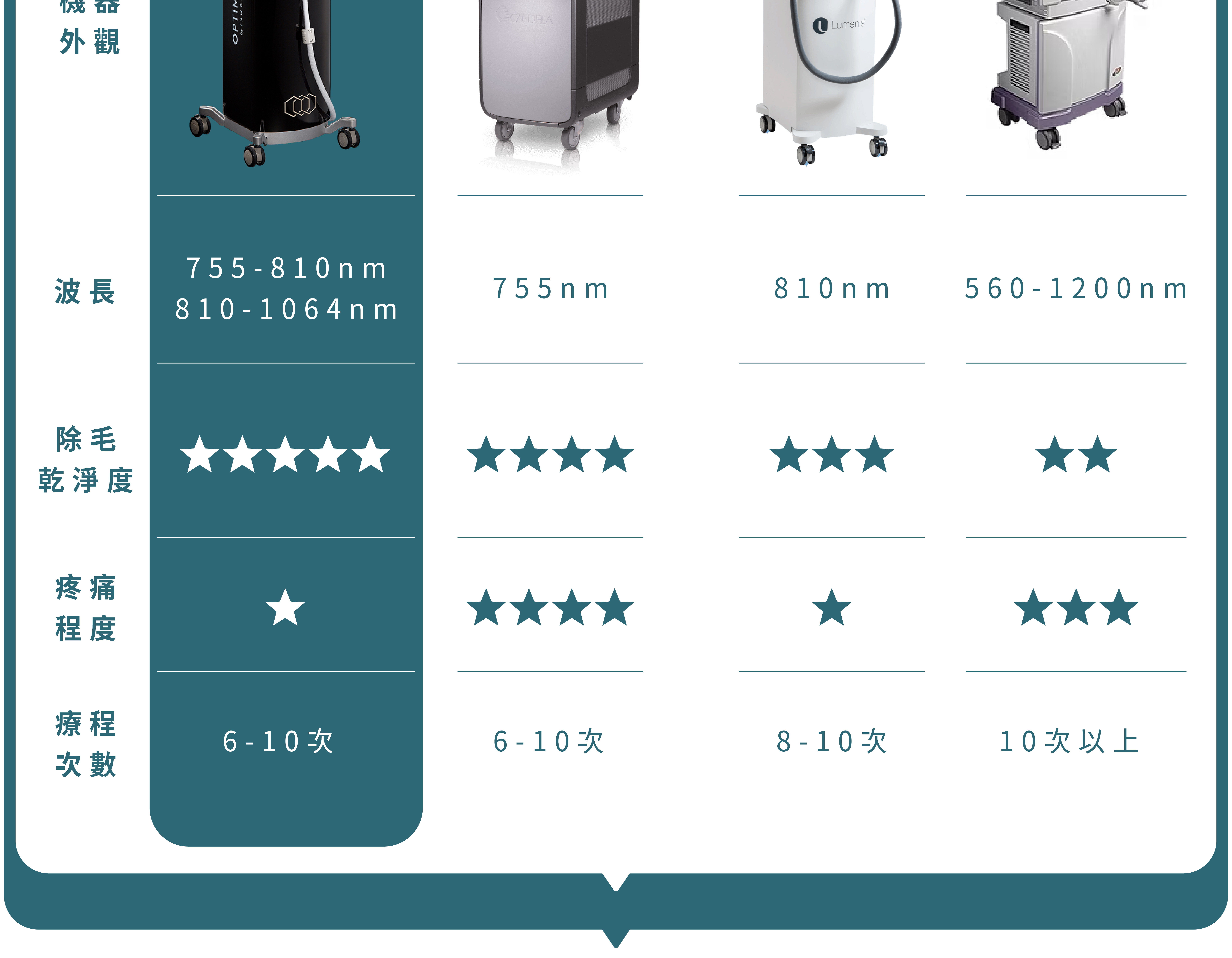 根據每個人的毛量多寡,治療次數會有所不同。一般來說,接受海神除毛雷射6-10次治療後,可以抑制70-80%的毛髮生長,達到永久性除毛的效果。